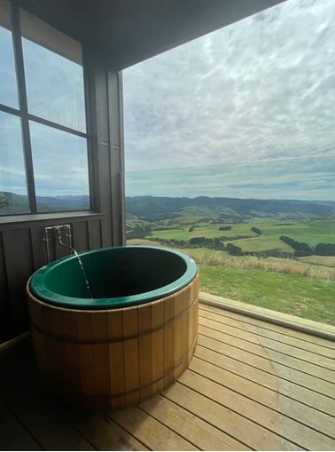 A continental breakfast is provided. For dinner, self-cater or treat yourself to a Beresford Bundle full of local delicacies to cook yourself, accompanied by homemade salads and dessert, delivered to your door. There is a great deck running the length of the lodge which features a lovely hot tub and sweeping panoramic view.
